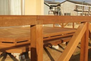 これだけでも随分しっかりしますが、更に8mmx100mmのビスを用意して笠木から柱に向かって打ち込みます。